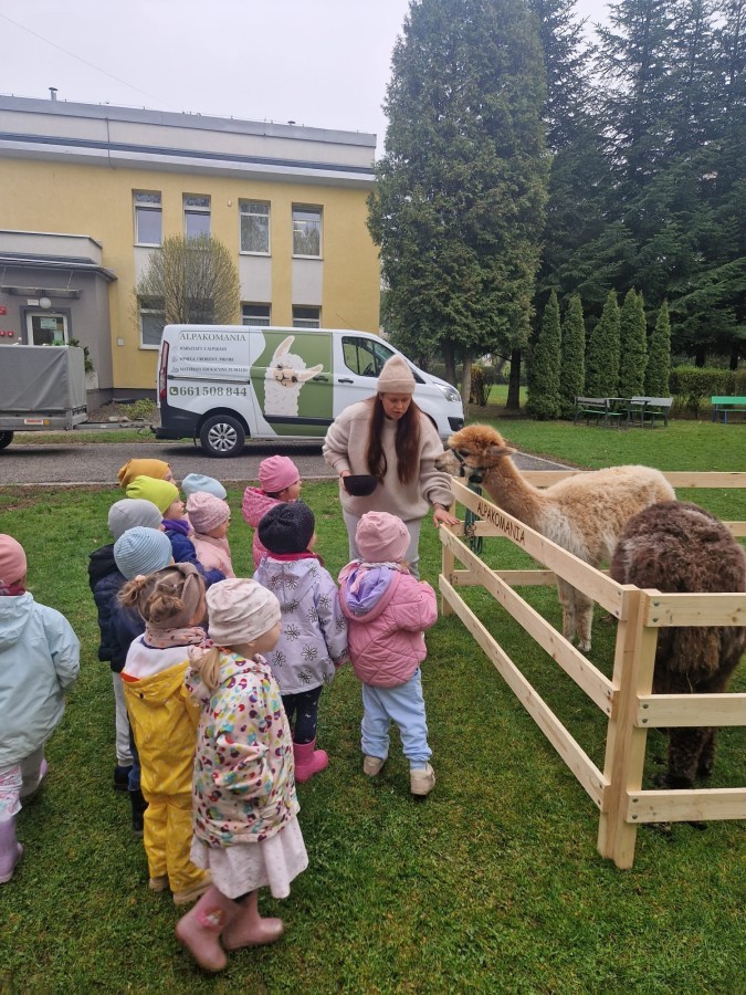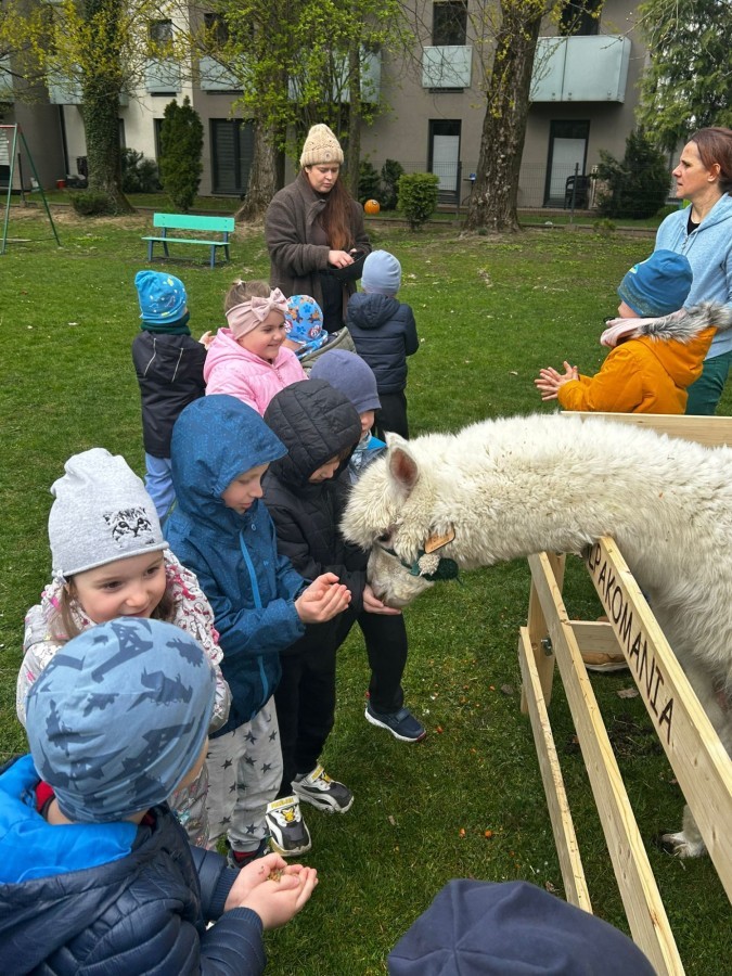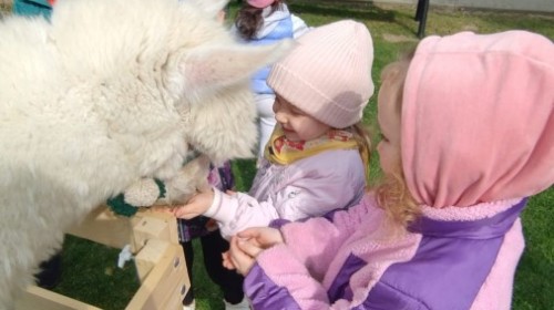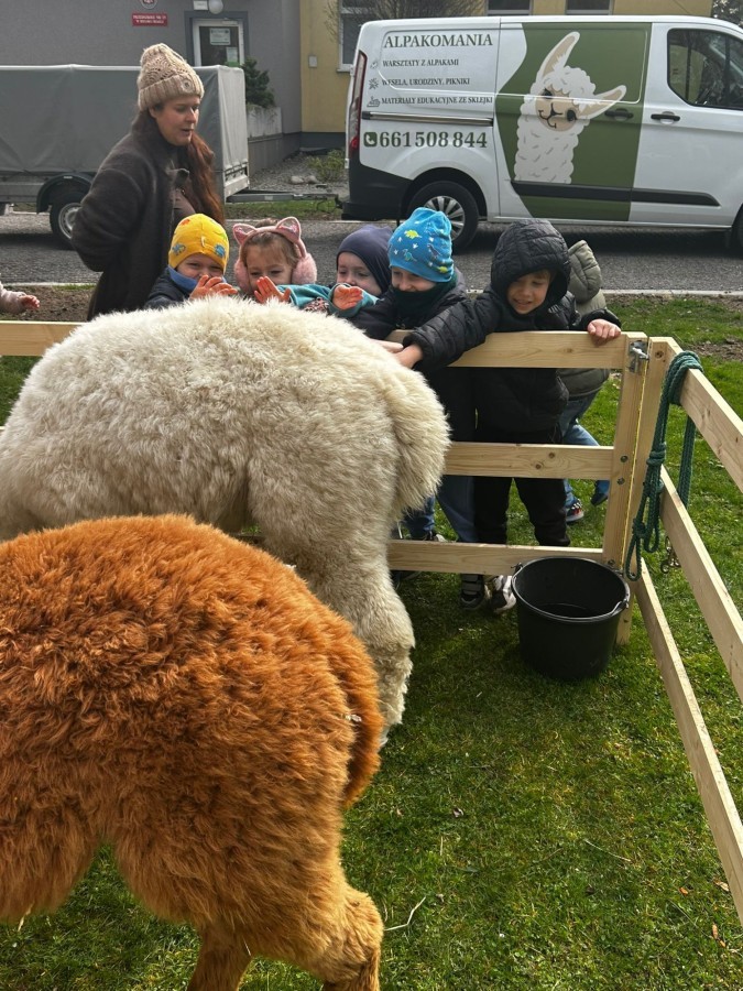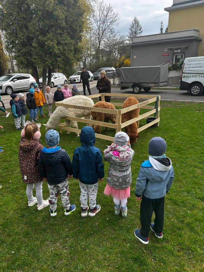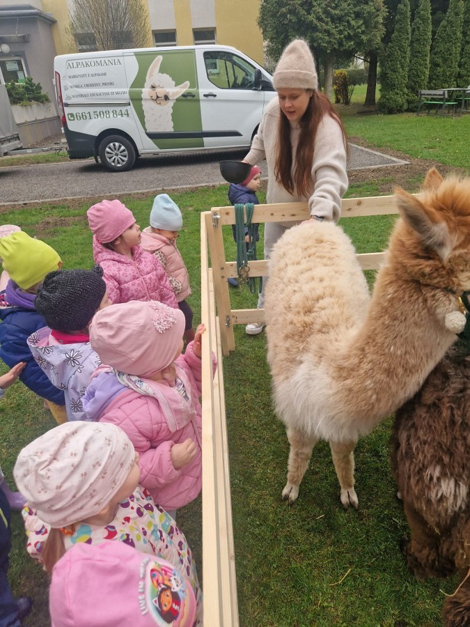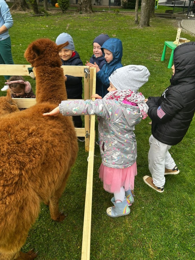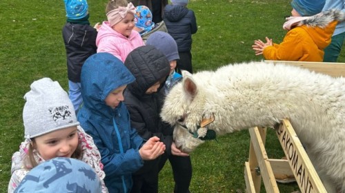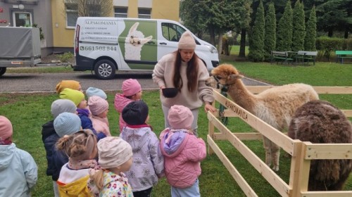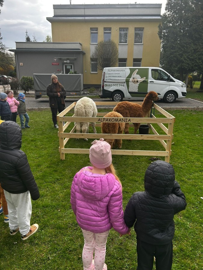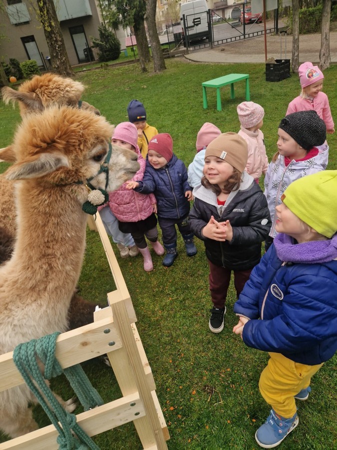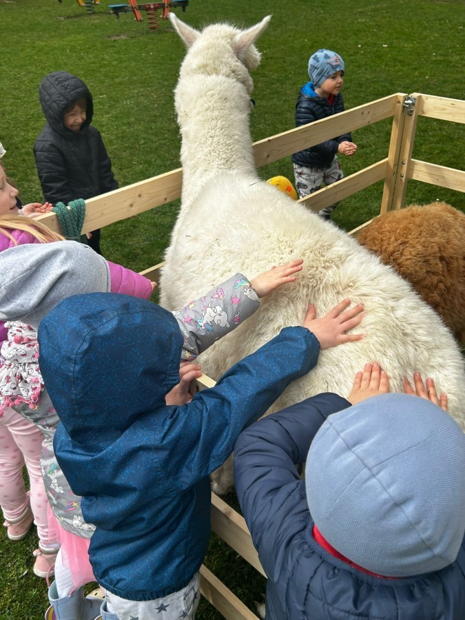 W zeszłym tygodniu nasze przedszkolaki przeżyły niezwykłą przygodę – odwiedziły nas urocze alpaki! 😊