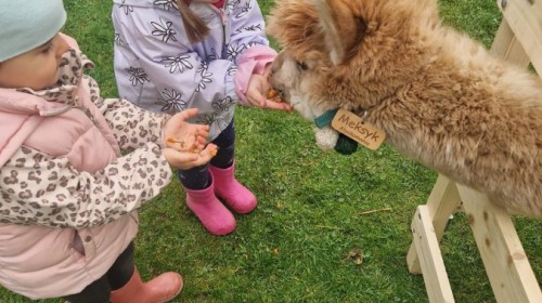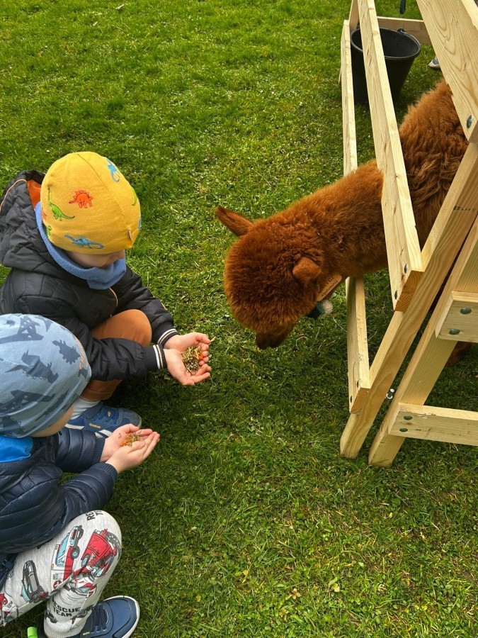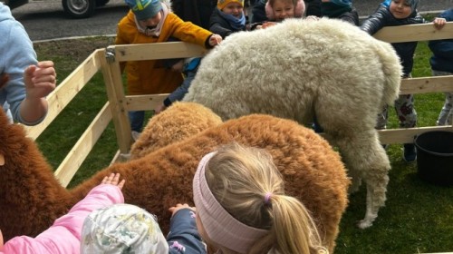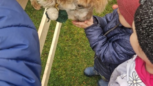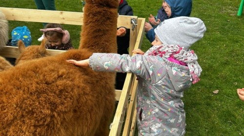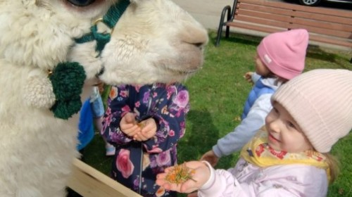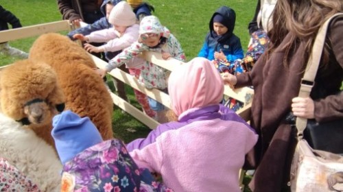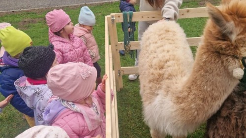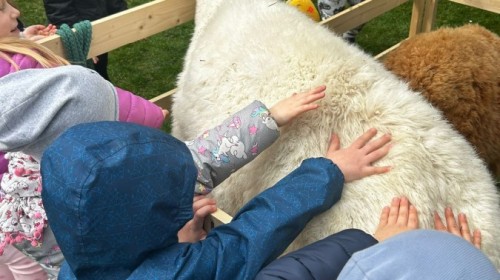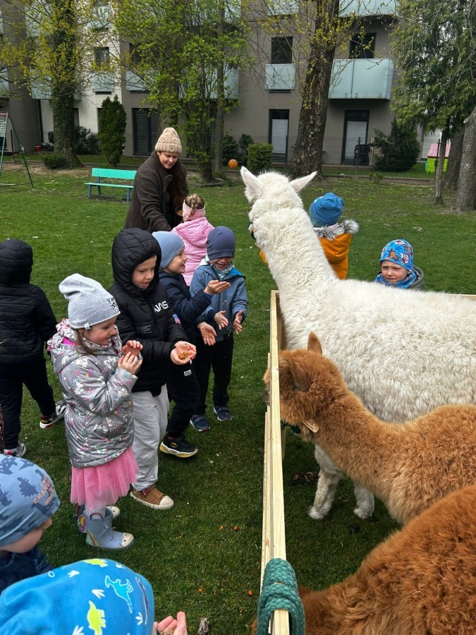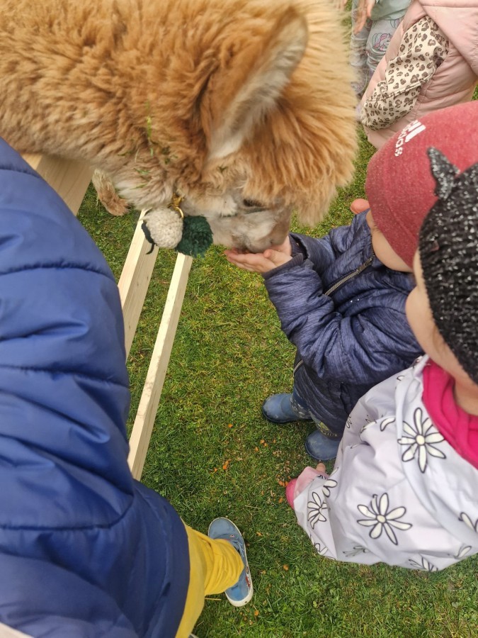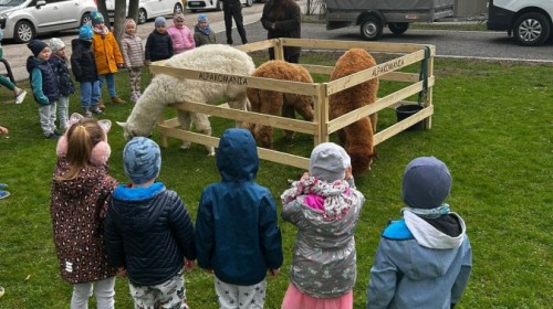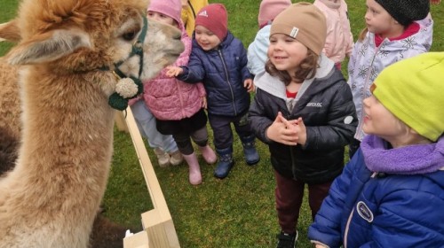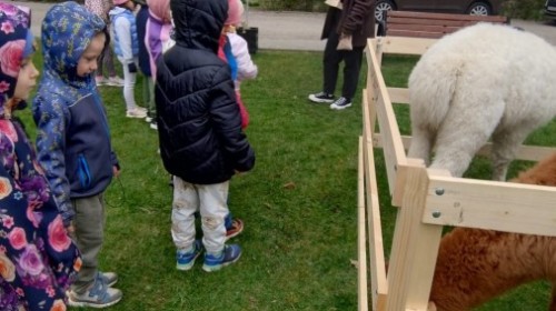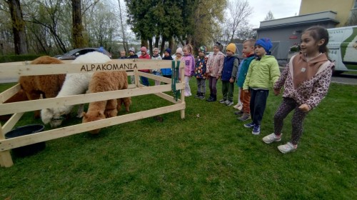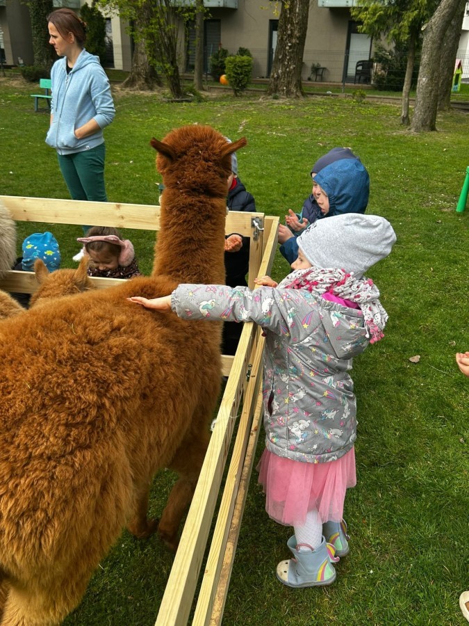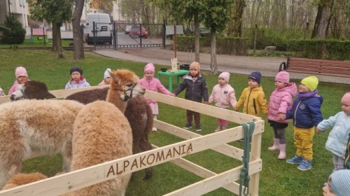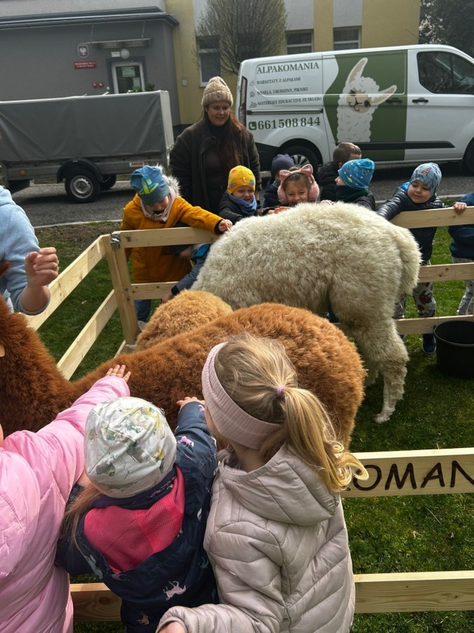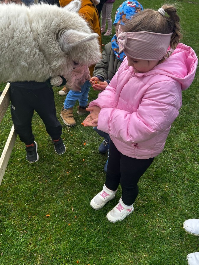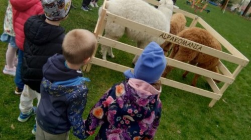 W zeszłym tygodniu nasze przedszkolaki przeżyły niezwykłą przygodę – odwiedziły nas urocze alpaki! 😊