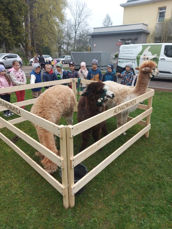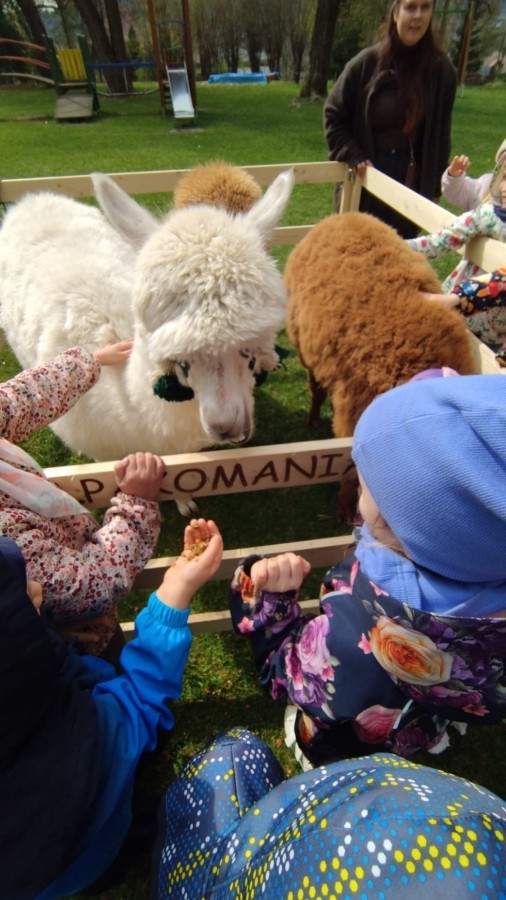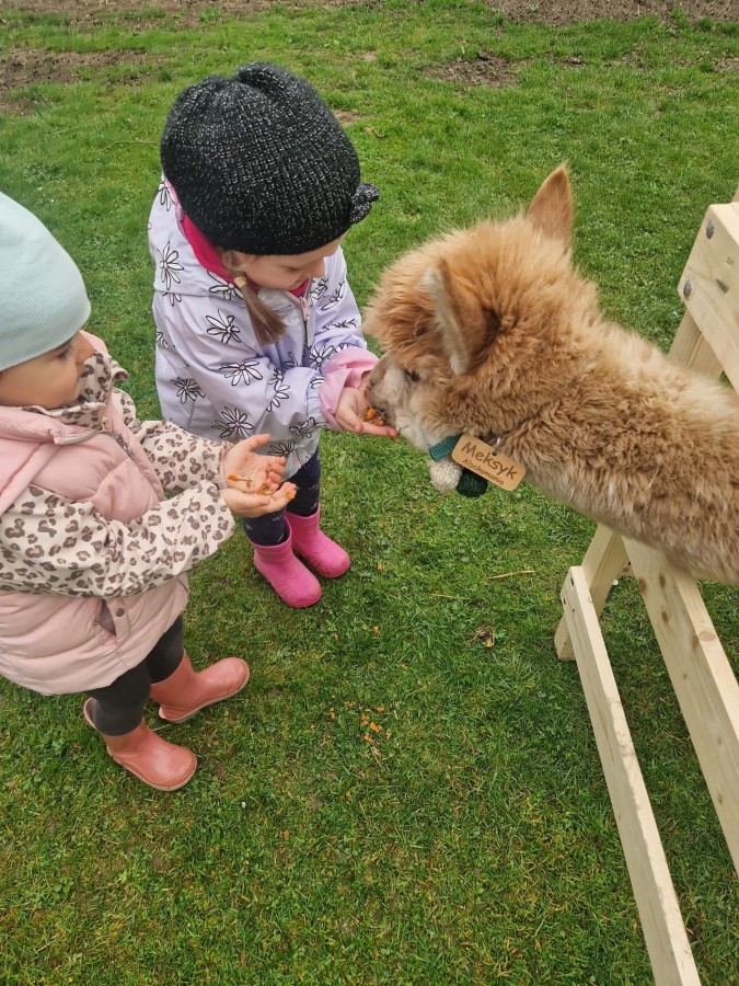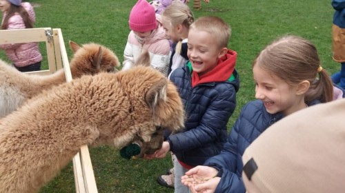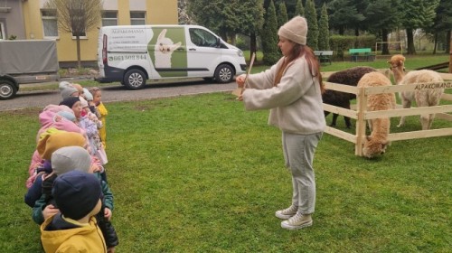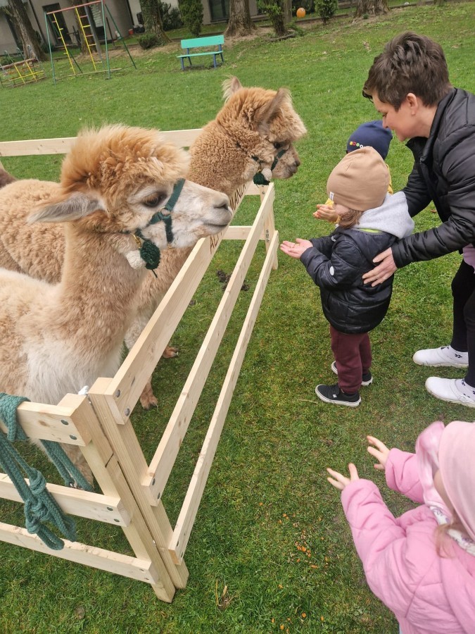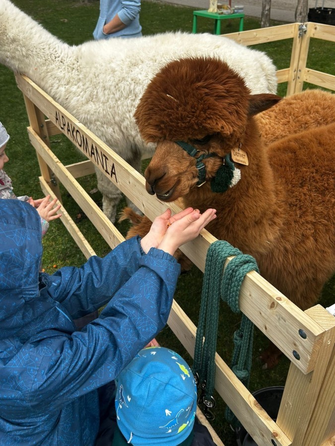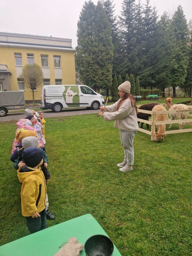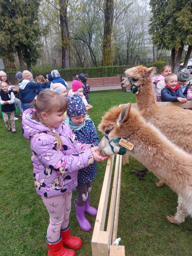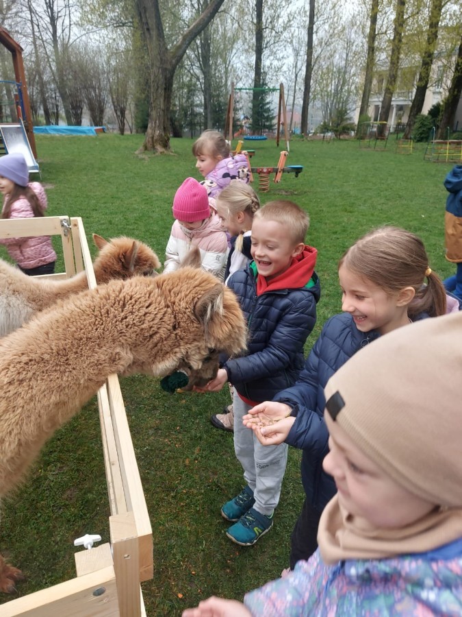 Dzieci miały okazję poznać ciekawostki z życia tych łagodnych zwierząt, dowiedzieć się, co jedzą i jakie mają zwyczaje. Największą radość sprawiło oczywiście karmienie i głaskanie alpak🦙