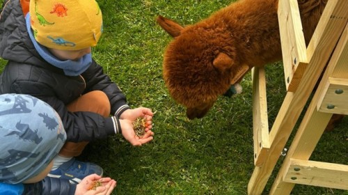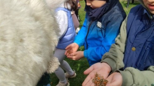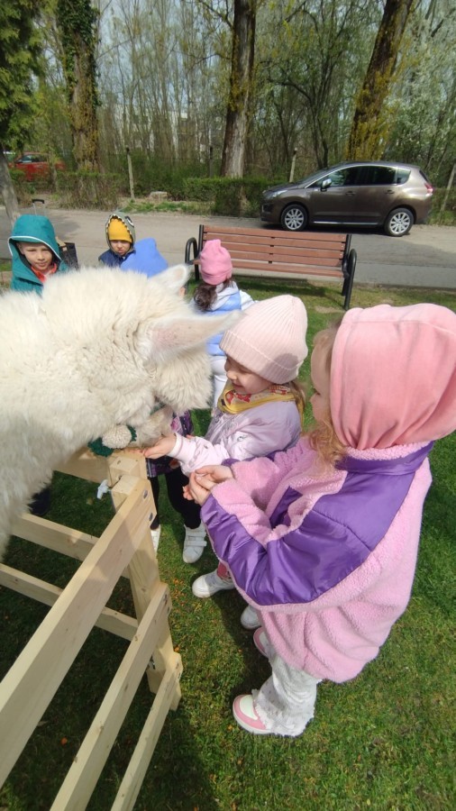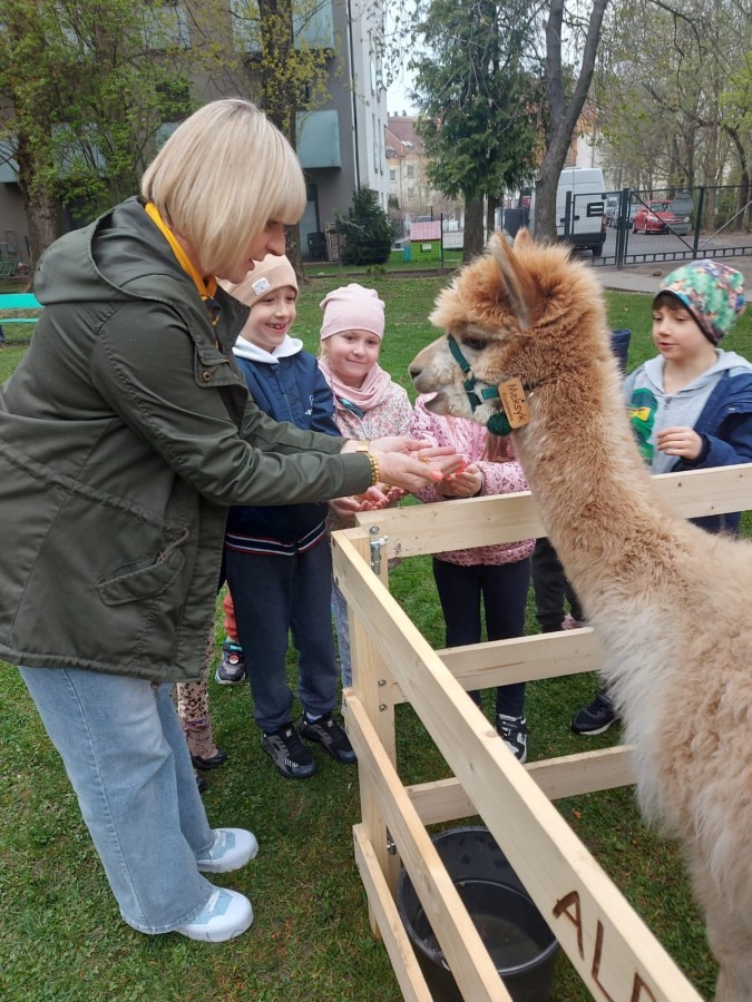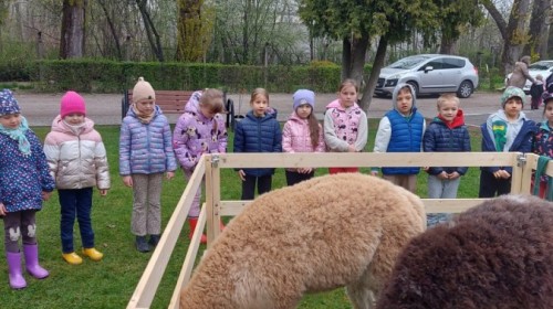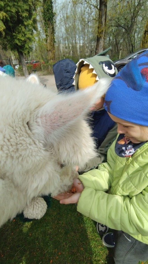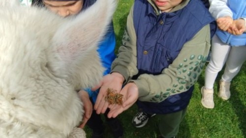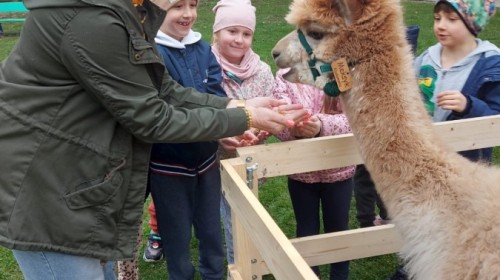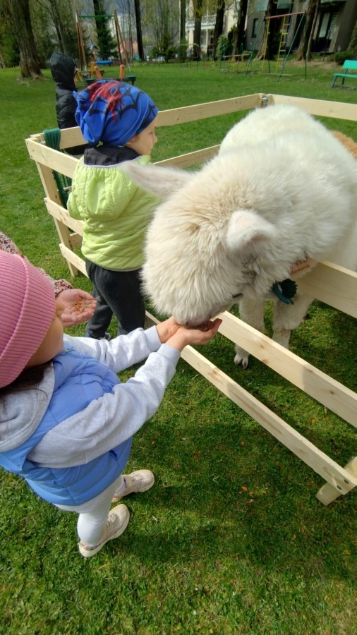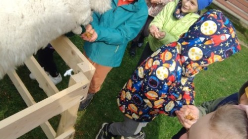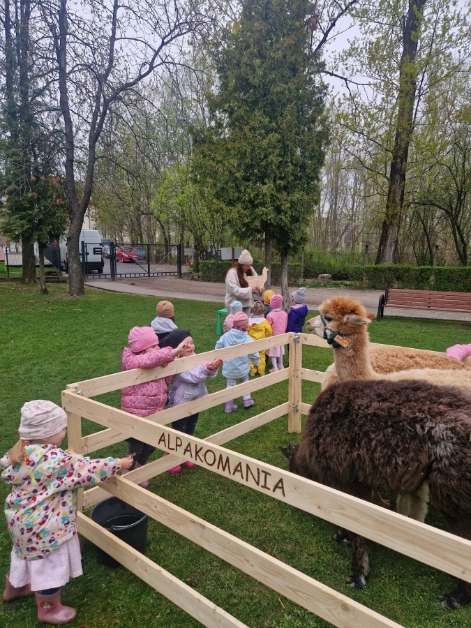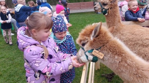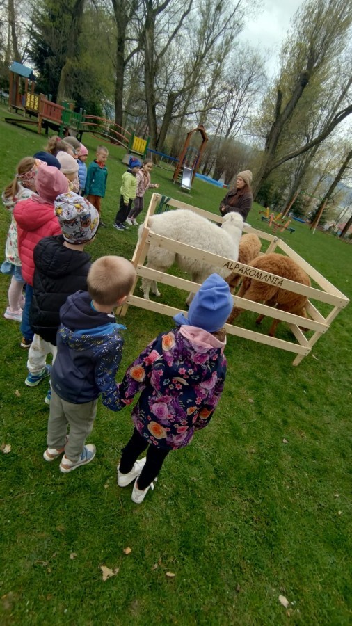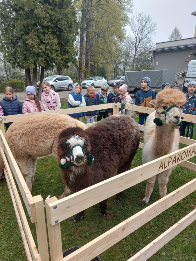 Dzieci miały okazję poznać ciekawostki z życia tych łagodnych zwierząt, dowiedzieć się, co jedzą i jakie mają zwyczaje. Największą radość sprawiło oczywiście karmienie i głaskanie alpak🦙
