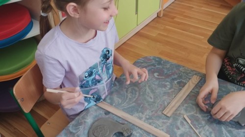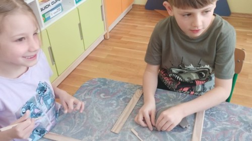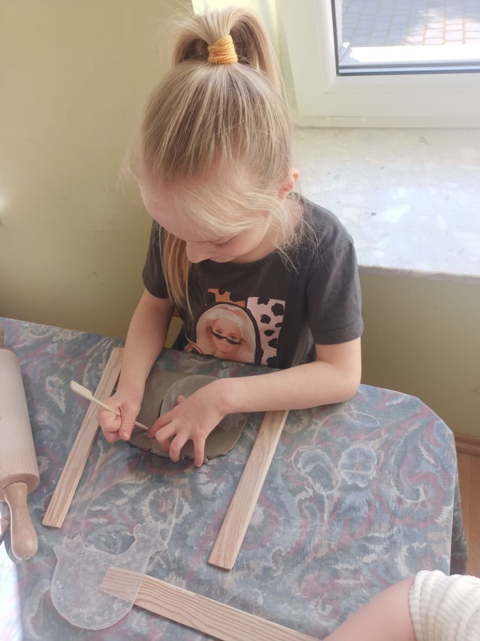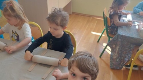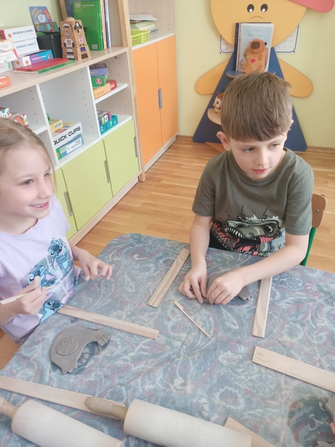 Był to czas pełen kreatywności, ale także wyciszenia i skupienia – kontakt z naturalnym materiałem pozwolił dzieciom się zrelaksować i rozwijać zdolności manualne. 🌿😊