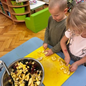 W dniu 1.12.2023 dzieci z gr. IV i V obejrzały prezentację multimedialną pt. " Pewnego dnia 66 milionów lat temu" i utrwaliły wiedzę nt dinozaurów, warunków w jakich żyły oraz jaki wpływ na wyginięcie tych zwierząt miały wulkany. Przedszkolaki stawiały swoje hipotezy i wyciągały wnioski. Poznały zawód paleontologa. Podsumowaniem zajęć było wykonanie eksperymentu "Wulkan" zaspokajającego ciekawość poznawczą i naturalną spontaniczność dziecka.