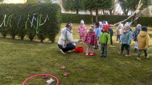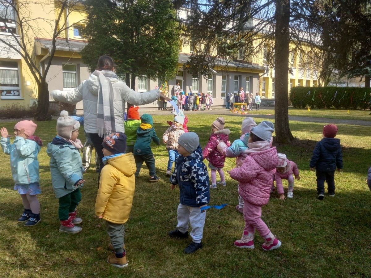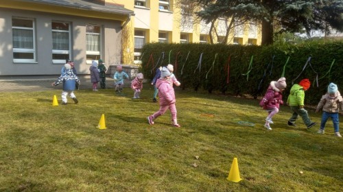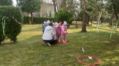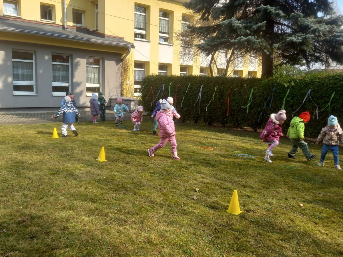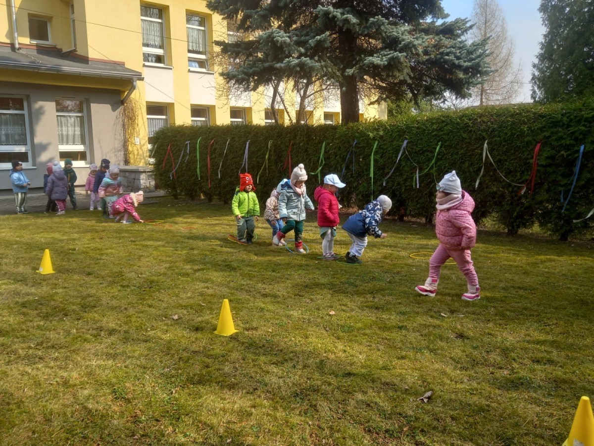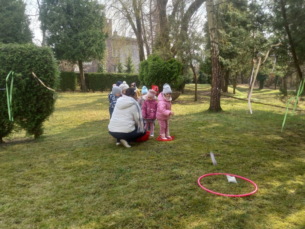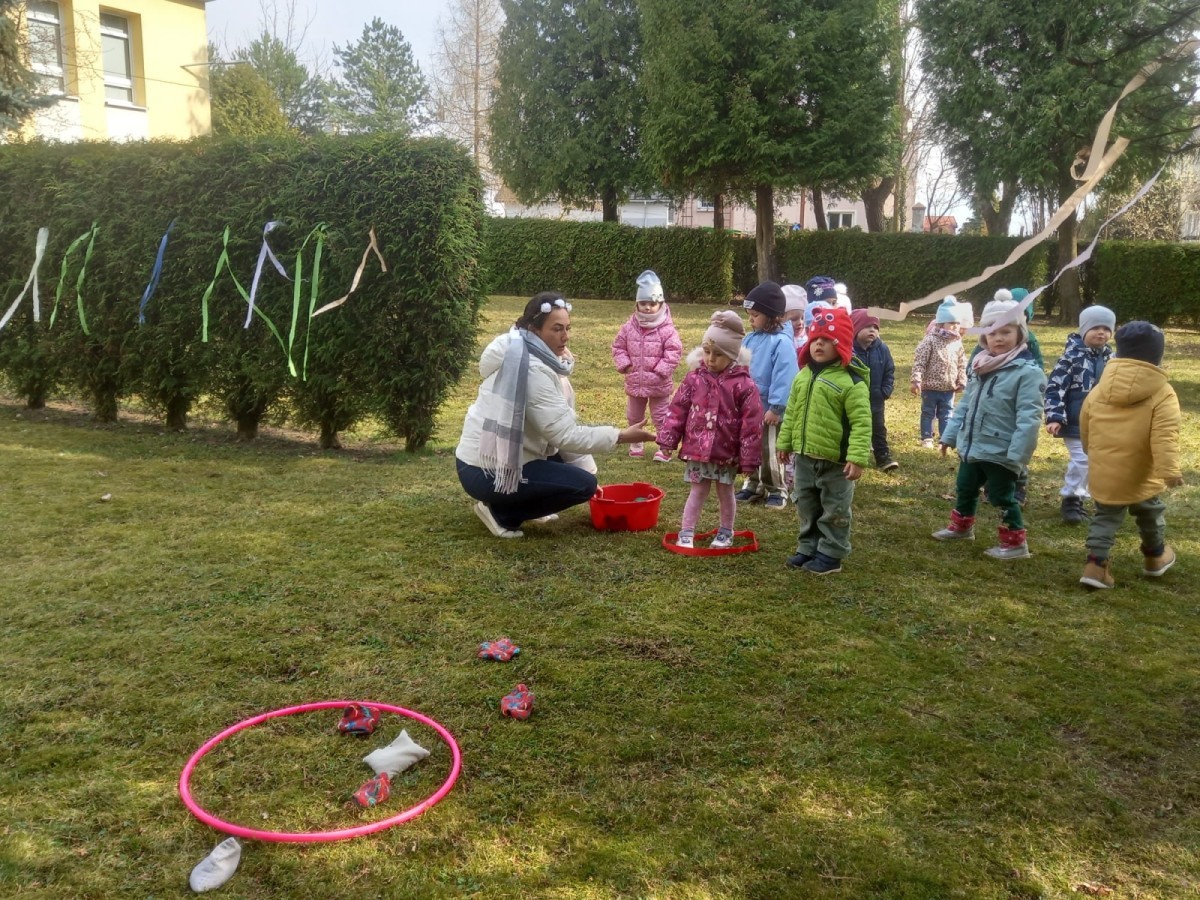 Dzieci radośnie przywitały wiosnę w ogrodzie przedszkolnym, gdzie czekało na nie wiele ciekawych konkurencji i wspólnych zabaw na świeżym powietrzu. Było dużo śmiechu, ruchu i wiosennej energii! 🌿😊