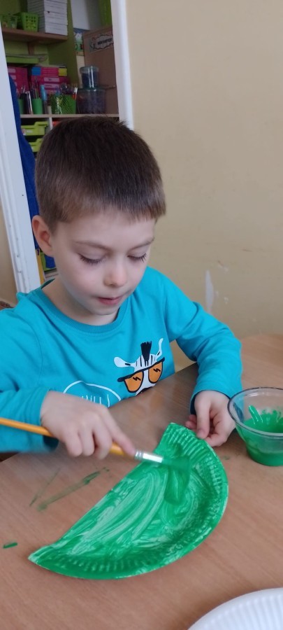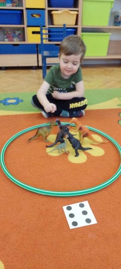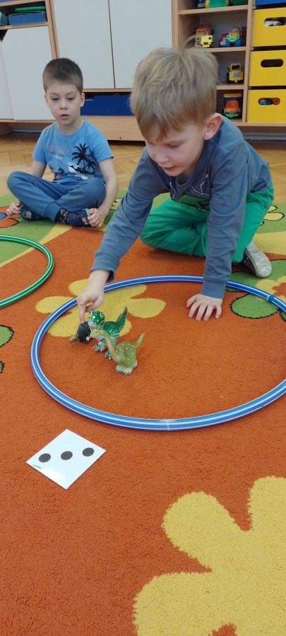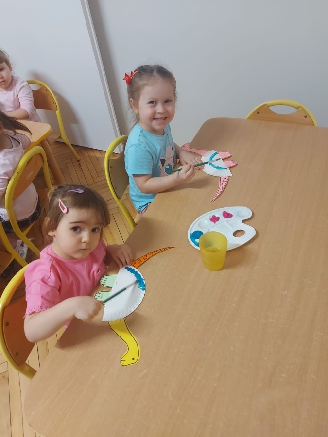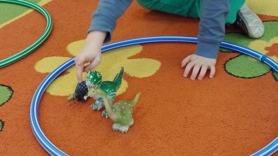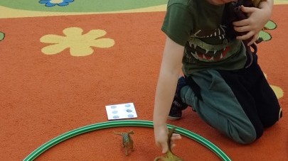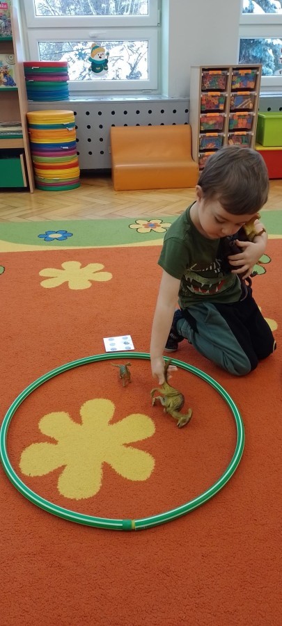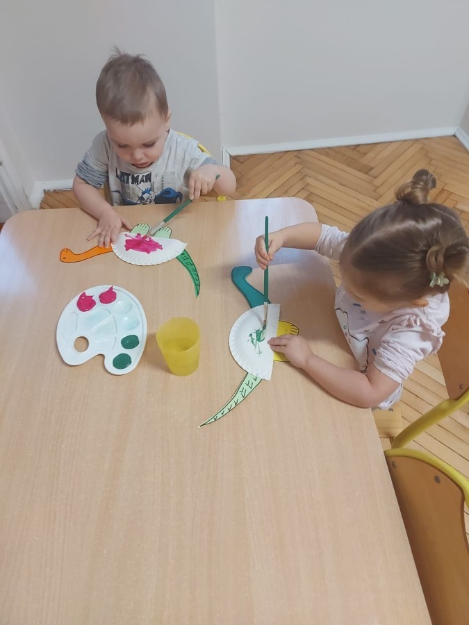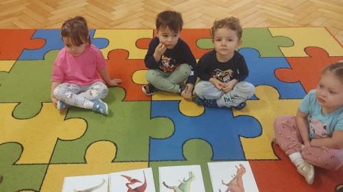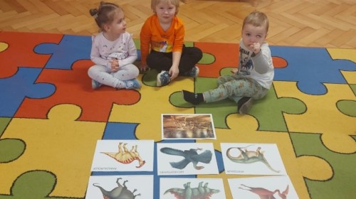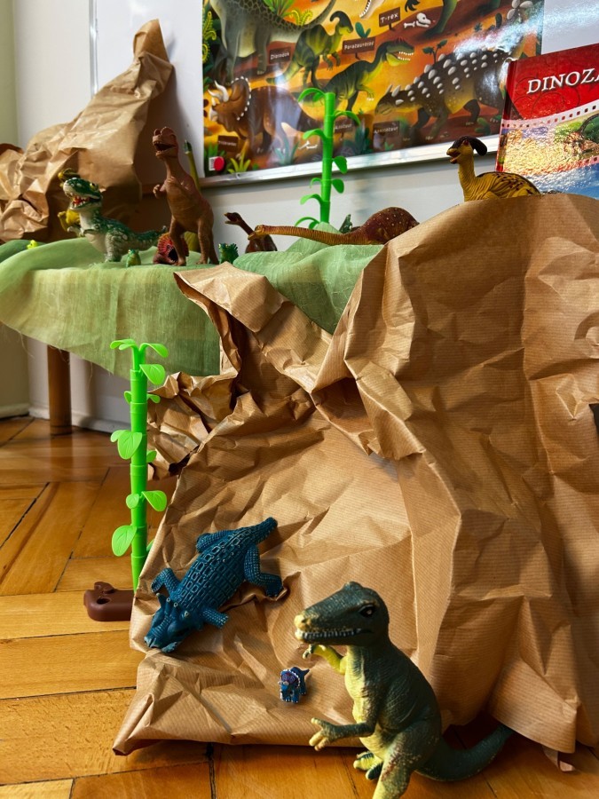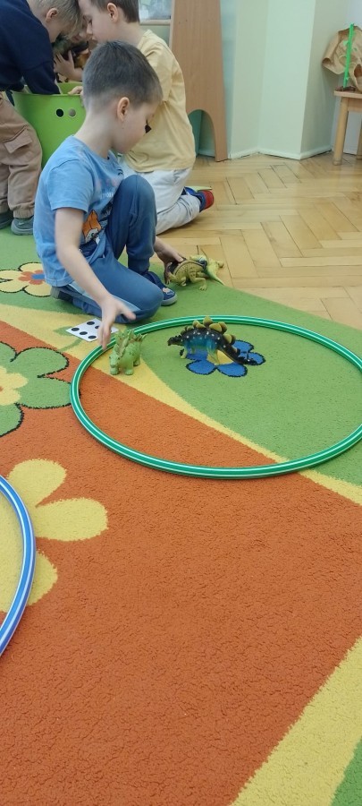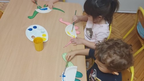 Podczas zajęć plastycznych dzieci wykonywały własne dinozaury z papieru i innych materiałów, rozwijając swoją wyobraźnię oraz sprawność manualną. Nie zabrakło także ruchowych zabaw tematycznych – zamienialiśmy się w małych paleontologów, oraz bawiliśmy się w dinozaurowe wyścigi.