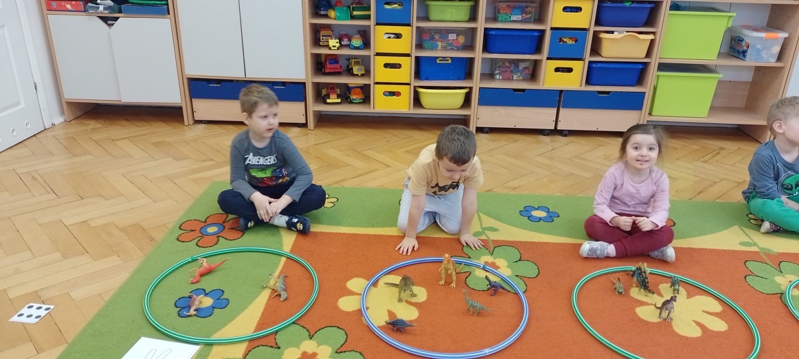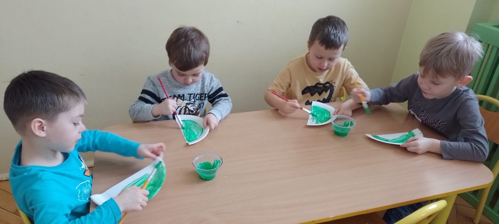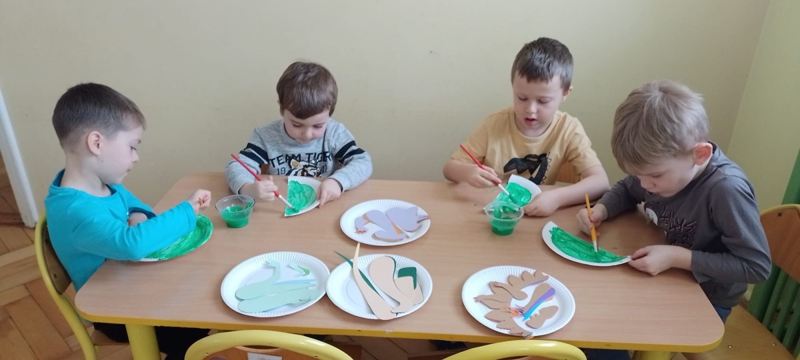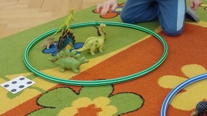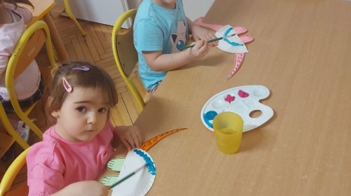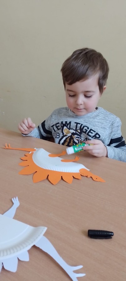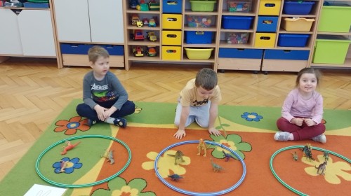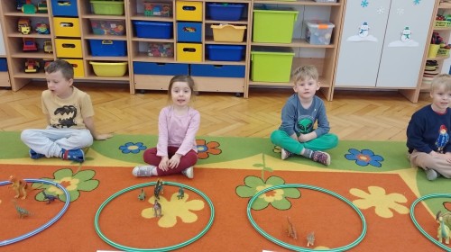 Podczas zajęć plastycznych dzieci wykonywały własne dinozaury z papieru i innych materiałów, rozwijając swoją wyobraźnię oraz sprawność manualną. Nie zabrakło także ruchowych zabaw tematycznych – zamienialiśmy się w małych paleontologów, oraz bawiliśmy się w dinozaurowe wyścigi.