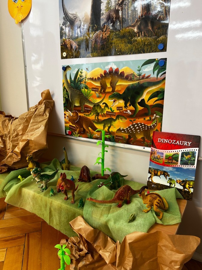 W tym tygodniu przenieśliśmy się do prehistorycznego świata dinozaurów. Dzieci z wielkim zainteresowaniem poznawały różne gatunki, takie jak Tyrannosaurus rex, Triceratops** oraz Stegosaurus. Rozmawialiśmy o tym, czym się żywiły, jak wyglądały oraz w jakich czasach żyły.