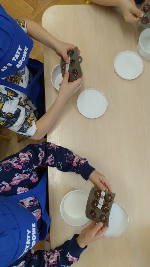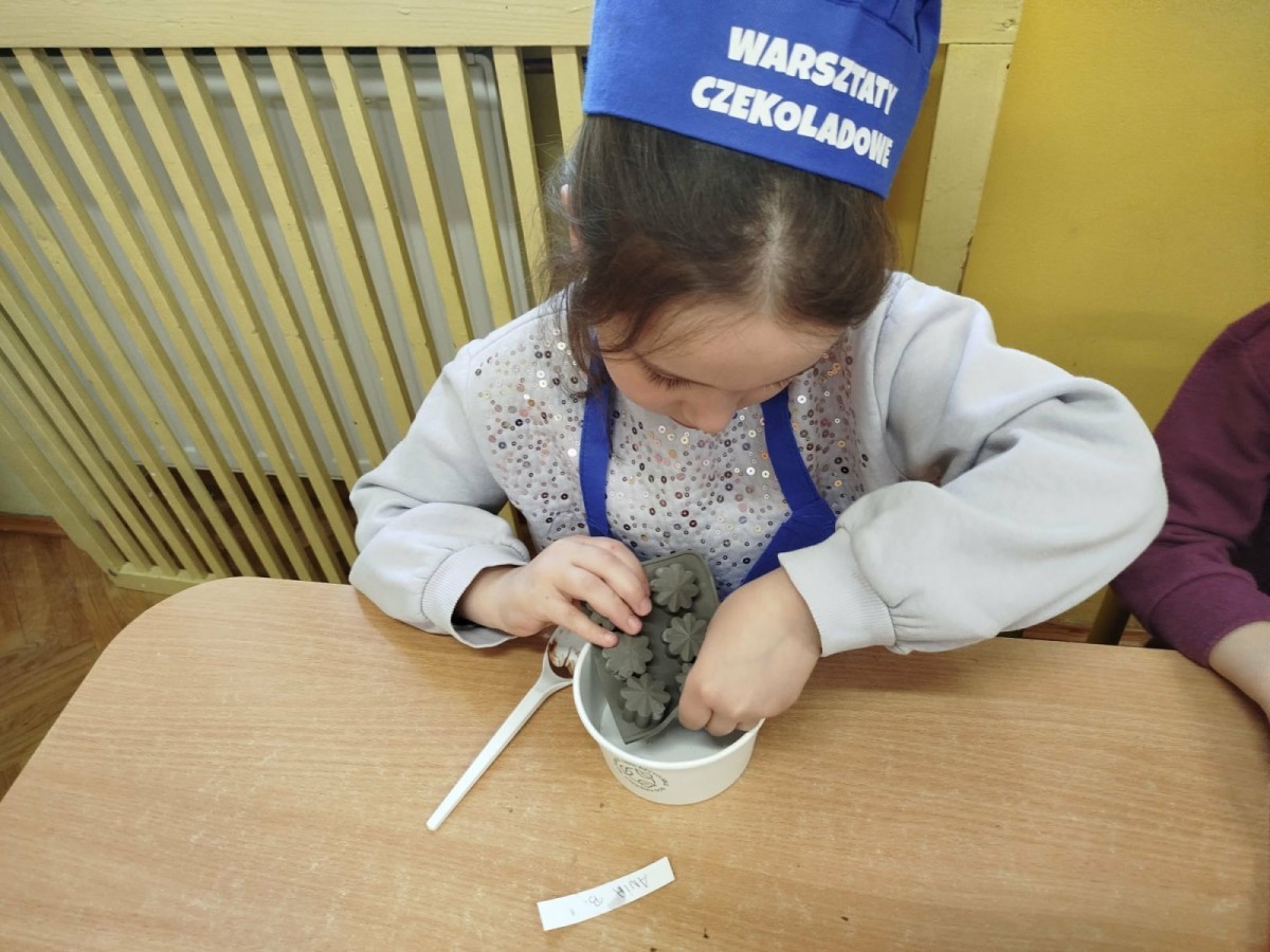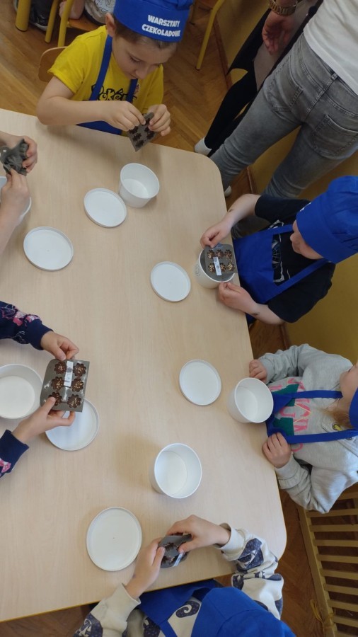 Najwięcej radości sprawiło samodzielne tworzenie własnych czekoladowych smakołyków, które dzieci pięknie zapakowały i z dumą zabrały do domu. 🎁🍫