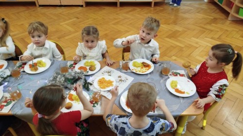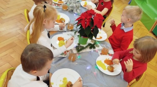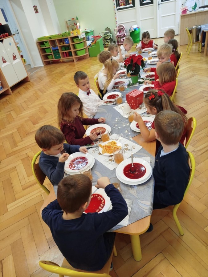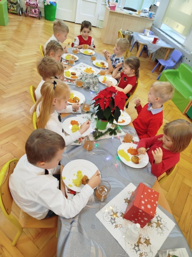 Wigilia przedszkolna to wyjątkowy dzień, w którym wszyscy ubieramy się wyjątkowo, składamy sobie świąteczne życzenia oraz wspólnie kolędujemy. Tak było i w tym roku. To był wspaniały dzień dla całego przedszkola!