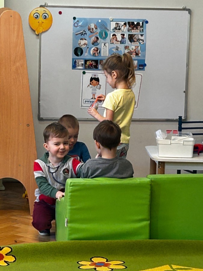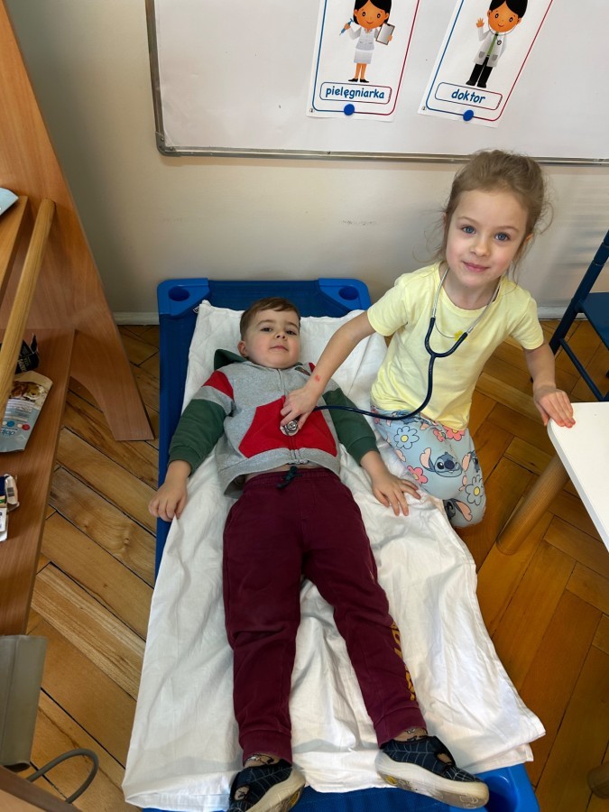 W ubiegłym tygodniu Zajączki 🐇 miały okazję bliżej poznać zawód lekarza. W specjalnie przygotowanym przez nauczyciela kąciku lekarskim przedszkolaki wcielały się w rolę małych doktorów i z wielkim zaangażowaniem badały swoich „pacjentów”. 😊