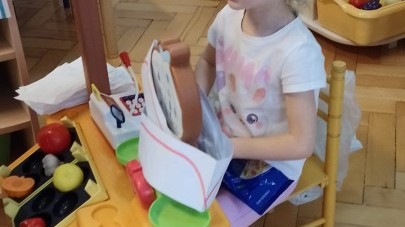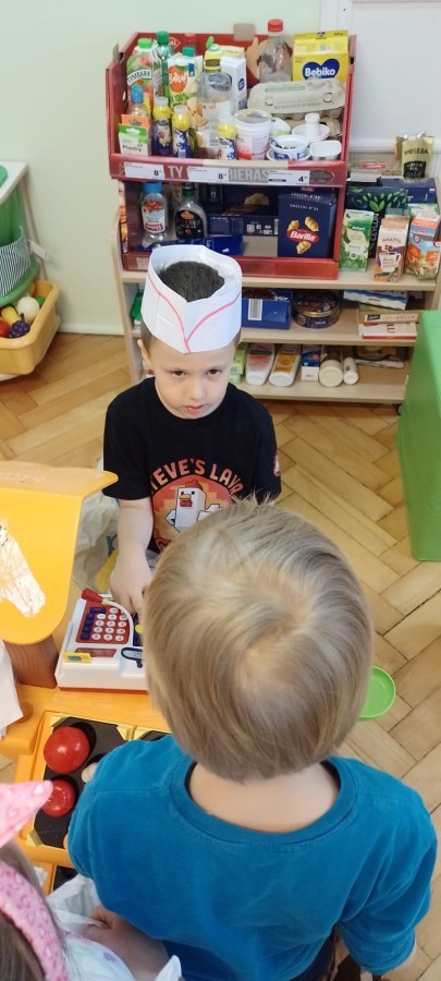 W ramach realizacji treści programu preorientacji zawodowej, dzieci z grupy II brały udział w zabawach i zajęciach, których tematem był zawód sprzedawcy.