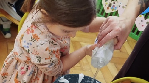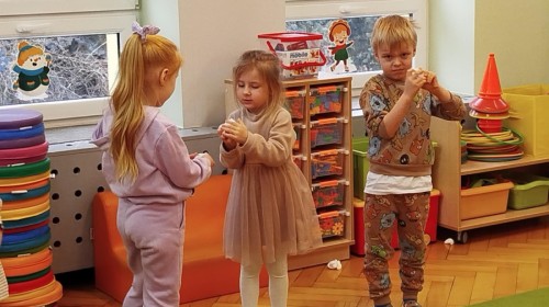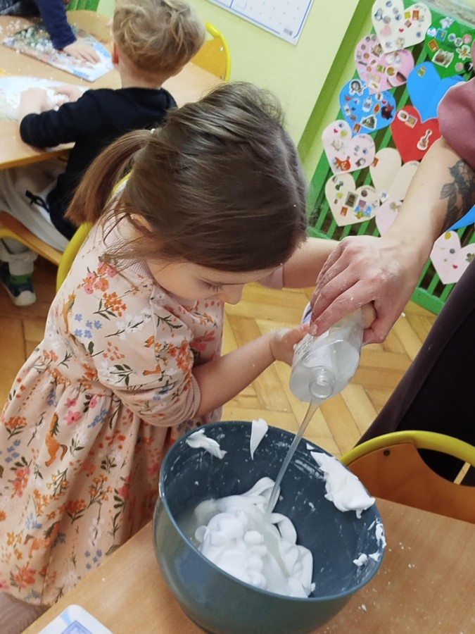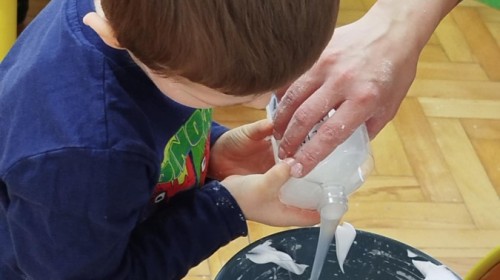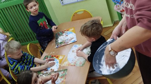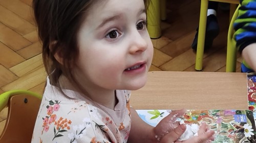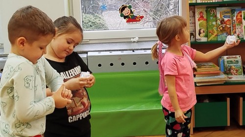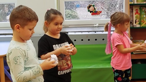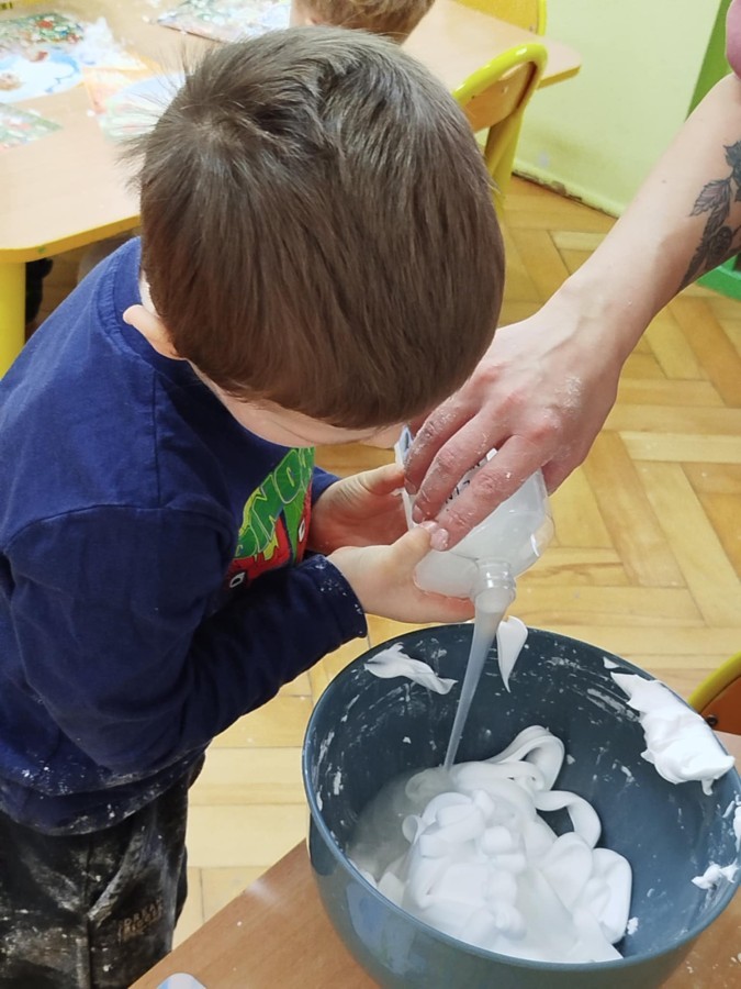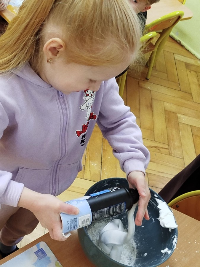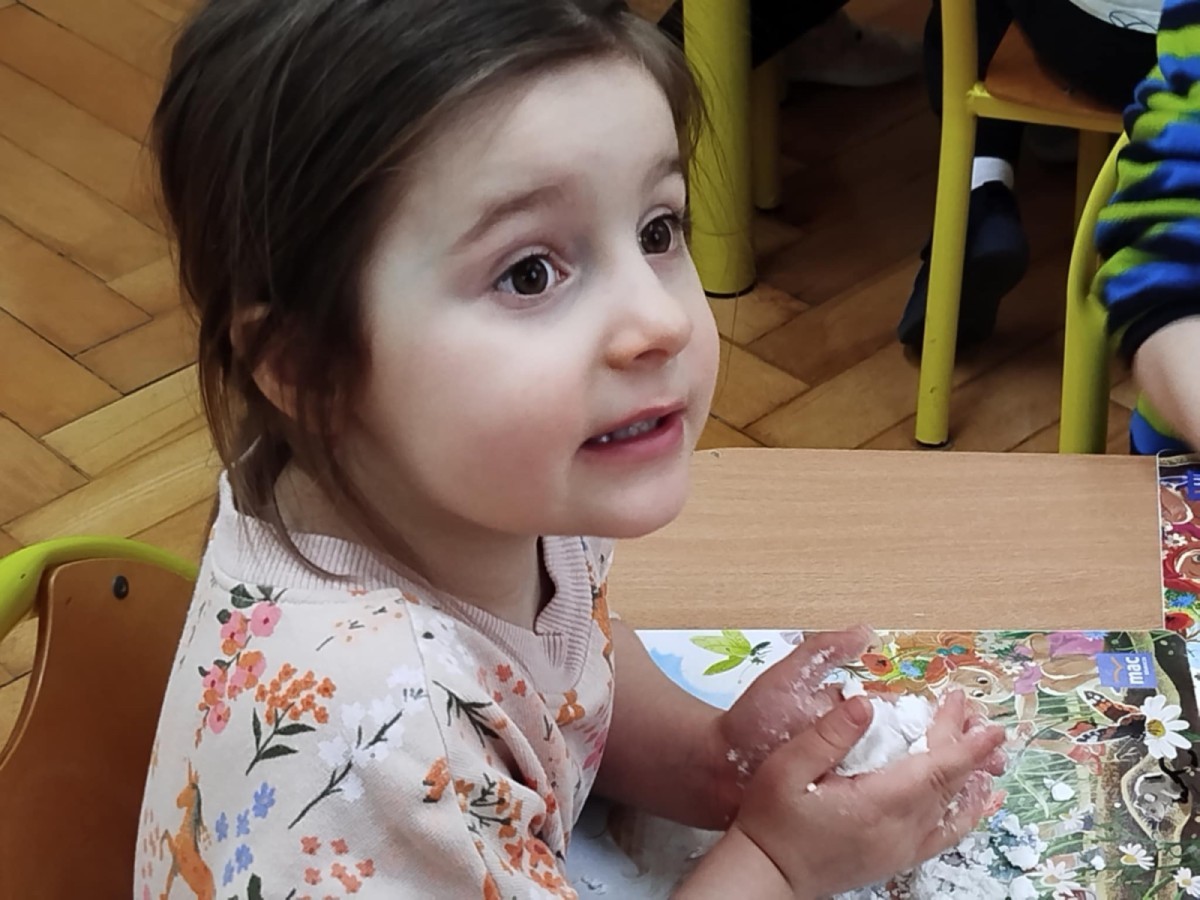 W ostatni piątek grupa zajączki sprawdziła, co może przypominać nam śnieg. Wspólnie dowiedzieliśmy się jak wykonać sztuczny śnieg, sprawdziliśmy jego strukturę i zapach oraz ulepiliśmy bałwanki. Kartki papieru i wata okazały się doskonałe do zrobienia śniegowych kul. Zabawa i doświadczenie, to doskonałe możliwości nauki!